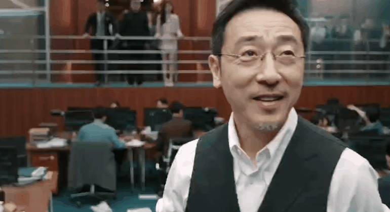 一出场就有种让人琢磨不透的阴沉,亦正亦邪,而在操纵股票平仓的那场戏里,则是迎来了演技爆发。